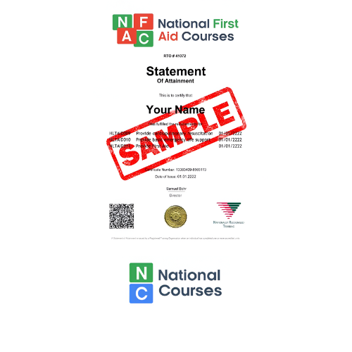 A First Aid certificate is a nationally recognised qualification that certifies you have the skills and knowledge to provide first aid in emergency situations.